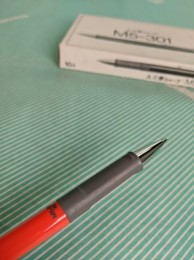 三菱鉛筆のシャープペンシルです。オレンジ色の軸のペンです。